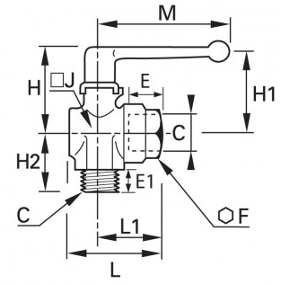 2/2 Højre-Vinklet Kugleventil , Udvendig/Indvendig BSPP Gevind