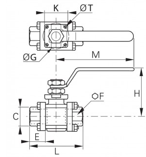 2/2 In-Line 3-Stykke Kugleventil med Fixing Plate, Indvendig BSPP Gevind