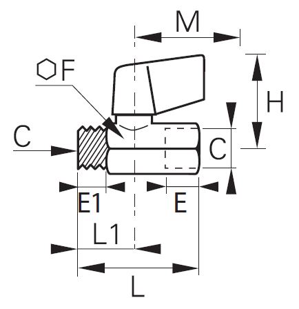 2/2 In-Line Kugleventil , Kort Greb, Udvendig/Indvendig BSPP Gevind
