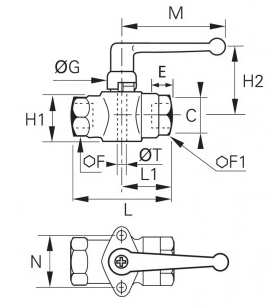 2/2 In-Line Kugleventil for Skrue Fixing, Indvendig BSPP Gevind