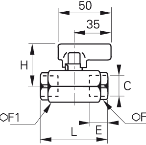 2/2 In-Line Light Series Kugleventil , Indvendig BSPP Gevind