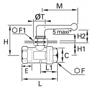 2/2 In-Line Panel Monteret Kugleventil , Indvendig BSPP Gevind