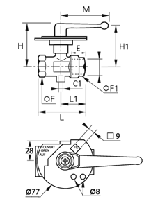 3/2 In-Line Låsbar Kugleventil med Gevind Ventil Port, Indvendig Gevind BSPP og Metrisk Gevind