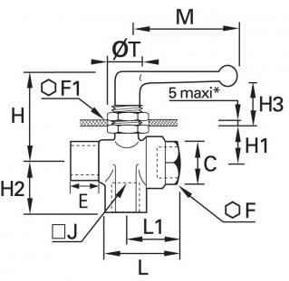 3/2 Panel Monteret Højre-Vinklet Kugleventil , Indvendig BSPP Gevind