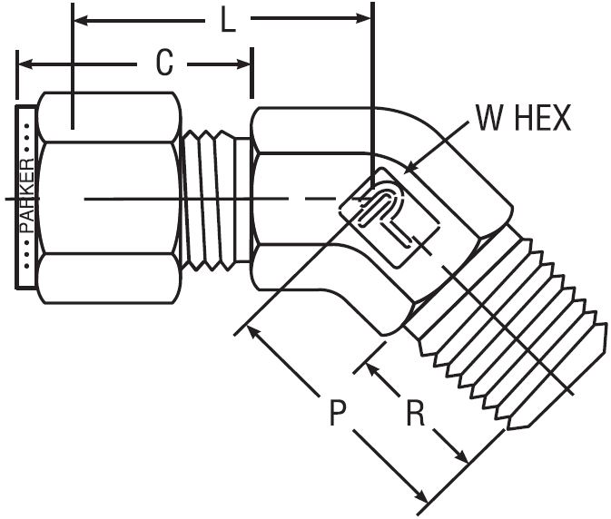 ALOK - NPT Han 45° Vinkel For Tomme Rør