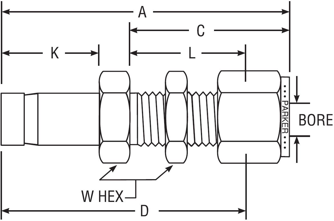 | 1 | A-Lok (Tomme) | Han | UNF | Komprimering - dobbelt Klemring |