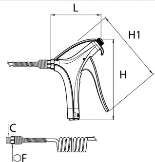 Blæsepistol Kit,Tilslutning foroven med Standard Dyse, Udvendig Gevind BSPT Gevind