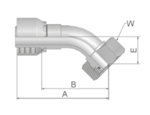 DIN - Metrisk Vinkel 45° Indstik - Metrisk Svivel (Hun) indv. gev./Omløber (Konus med O-ring 24°)