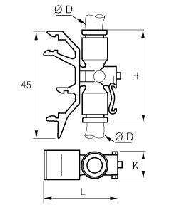 DIN Skinne Samler for 2 Rør