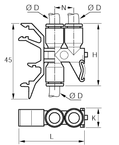 DIN Skinne Samler for 3 Rør