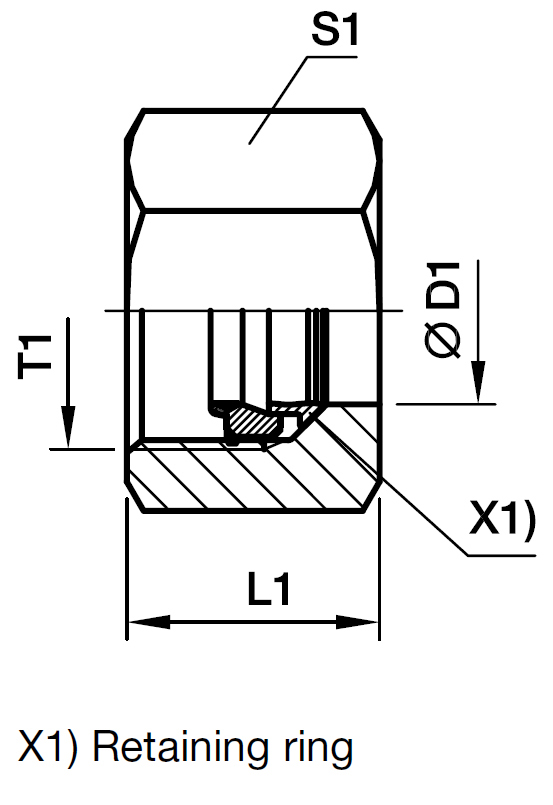 Parker Ermeto Functional Nut. Komplet sæt med omløber, Skæring/holdering (retaining ring), gummipakning (DOZ-ring).