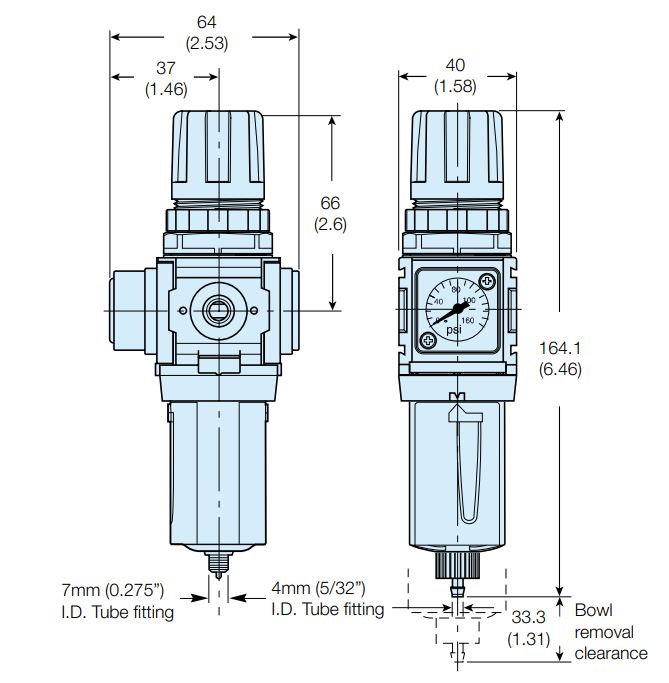 Filterregulatorer til serierne: P31 Mini, P32 Kompakt og P33 Standard.