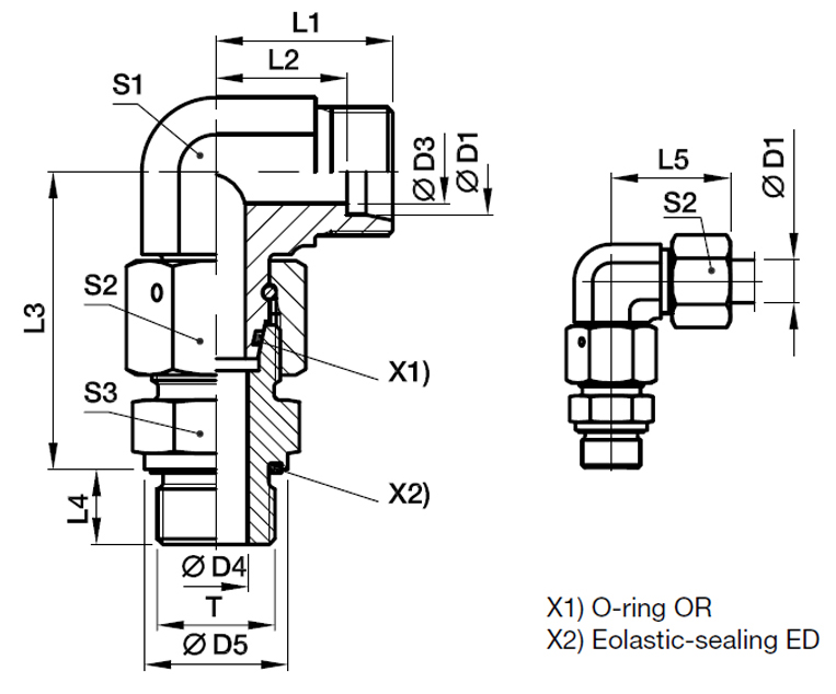 Formonteret Stilbar Svivel Vinkel - Udvendig Metrisk Gevind - ED-Pakning