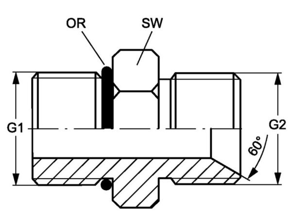 Hydr. Adaptor, Lige: Han/Han - , O-ring / BSP, Udkravning, 60 °