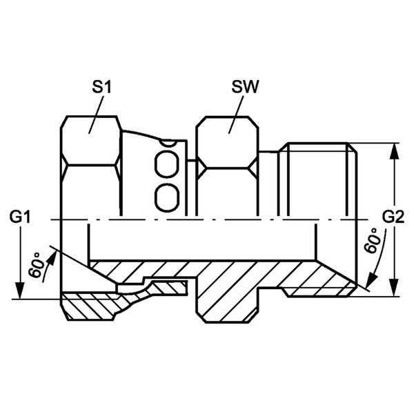 Hydr. Adaptor, Lige: Omløber/Han - BSP, Konus, 60 ° / BSP, Udkravning, 60 °