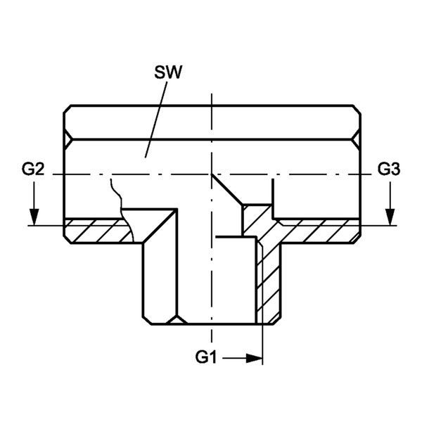 Hydr. Adaptor, TEE: Hun/Hun/Hun - BSP, Seal from Han part / BSP, Seal from Han part / Seal from Han part