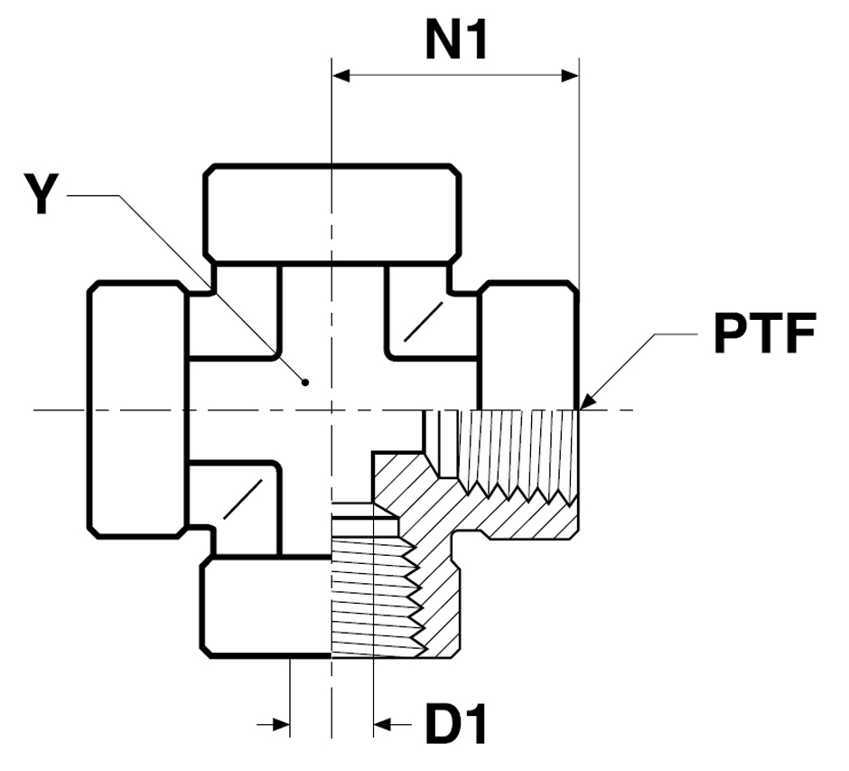 Indvendig Gevind Cross - Indvendig NPTF/NPT Gevind