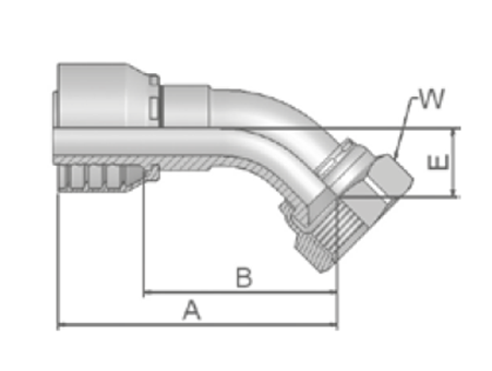 JIC Vinkel 45° Indstik - UN/UNF Svivel (Hun) indv. gev./Omløber (Udkravning 37°)