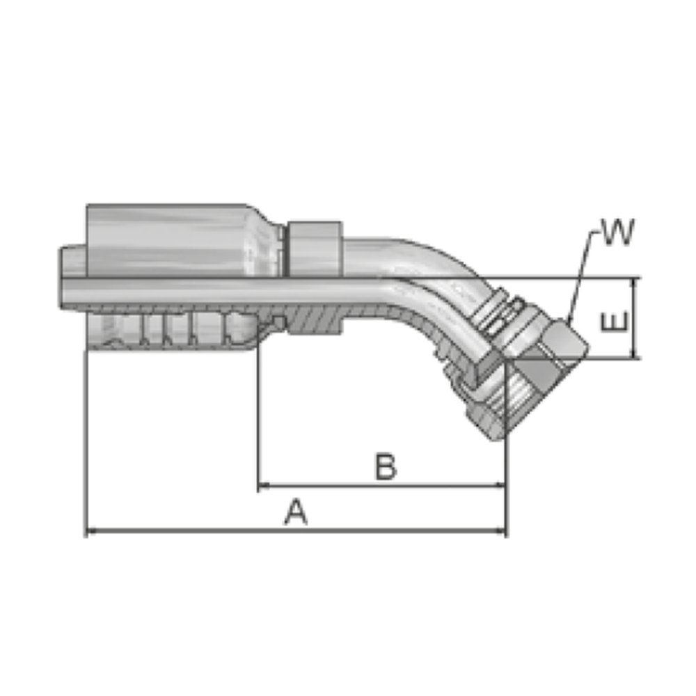 JIC Vinkel 45° Indstik - UN/UNF Svivel (Hun) indv. gev./Omløber (Udkravning 37°)