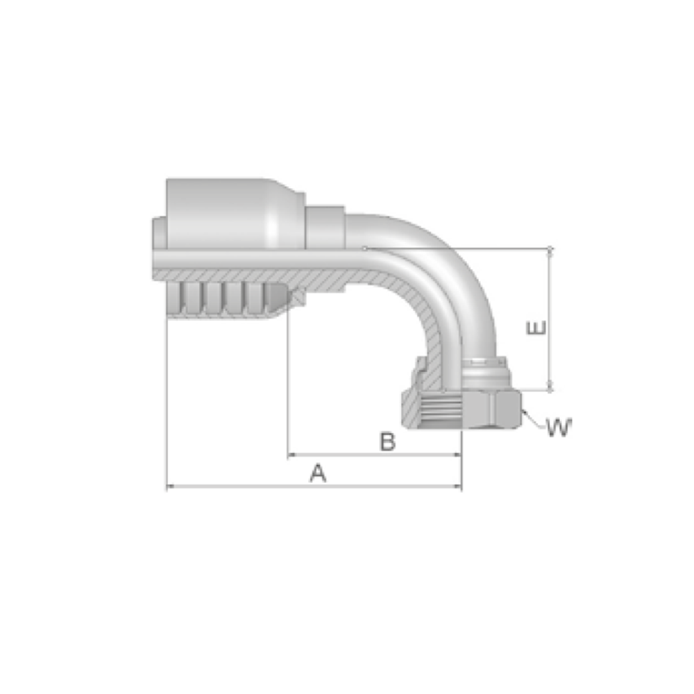 JIC Vinkel 90° Indstik - UN/UNF Svivel (Hun) indv. gev./Omløber (Udkravning 37°)