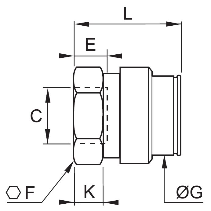 Kobling, Lige gennemløb, Indvendig BSPP Gevind