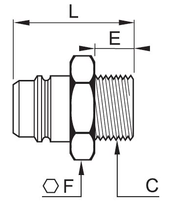 Kobling, Lige gennemløb, Udvendig Gevind BSPP Gevind
