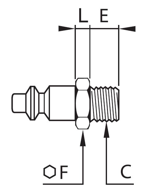 Koblingsnippel, Lige gennemløb, Udvendig Gevind BSPP Gevind