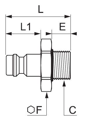 Koblingsnippel, Lige gennemløb, Udvendig Gevind BSPP Gevind