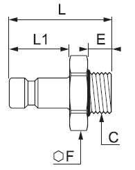 Koblingsnippel, Lige gennemløb, Udvendig Gevind BSPP og Metrisk Gevind