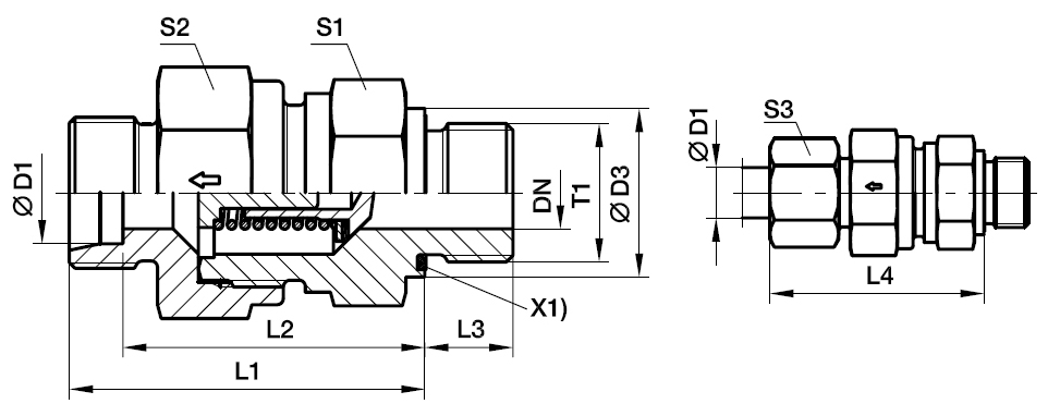Kontraventil - EO 24° Konus Ende / Udvendig BSPP Gevind – ED-Pakning