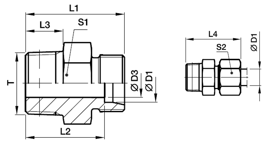 Lige Indskruning - Udvendig Kort Metrisk Konisk Gevind
