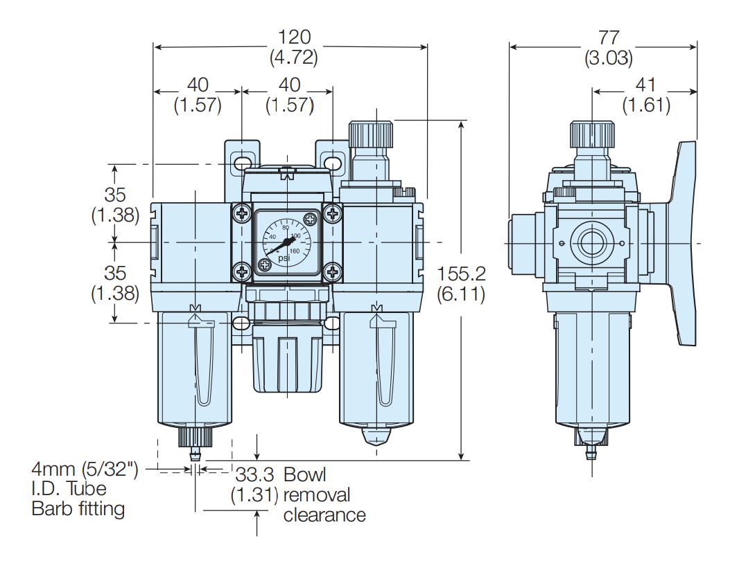 P31 serien er en modulopbygget luftbehandlingsenhed til sikring af luftkvalitet i dit system. P31 den mindste i serien, hvor kroppen på enheden er 40 mm i bredde, og har en 1/4" portforbindelse.