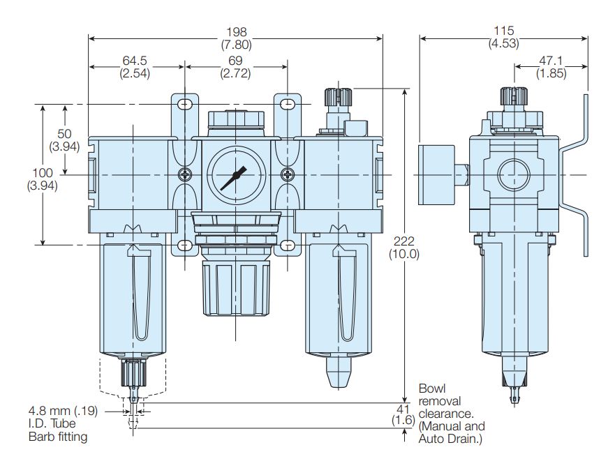 P32 serien er en modulopbygget luftbehandlingsenhed til sikring af luftkvalitet i dit system. Størrelsen på P32 kroppen er 60mm i bredde og har 1/4", 3/8" og 1/2" portforbindelse.