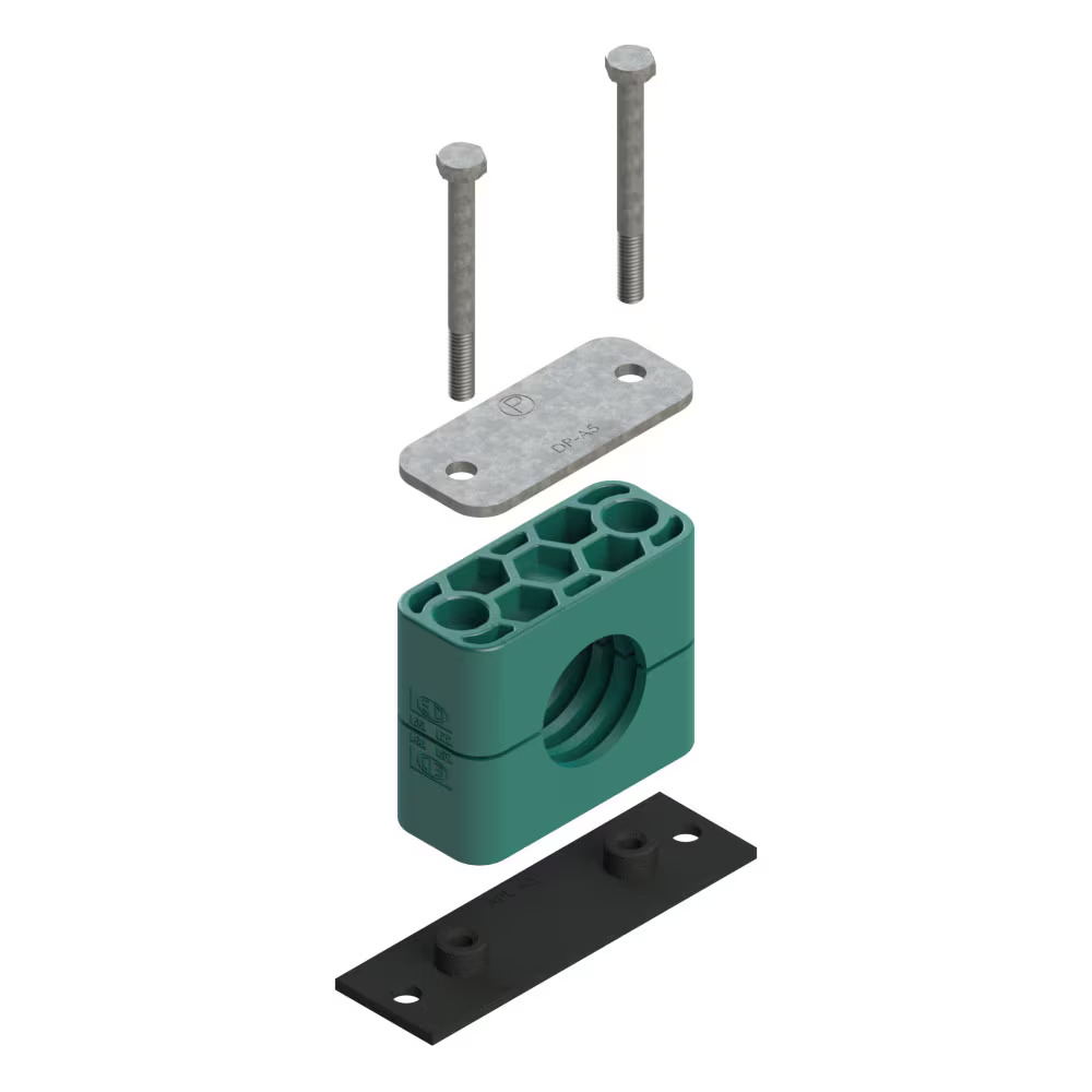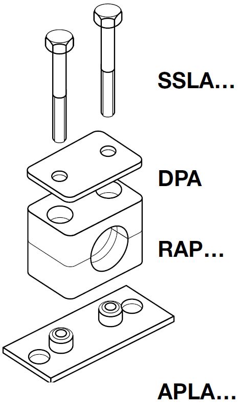 Rørbærer Serie A (Let Serie) - Komplet sæt (lang svejse-/skrueplade / bolt med sekskant/hex hoved / dækplade)