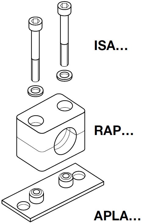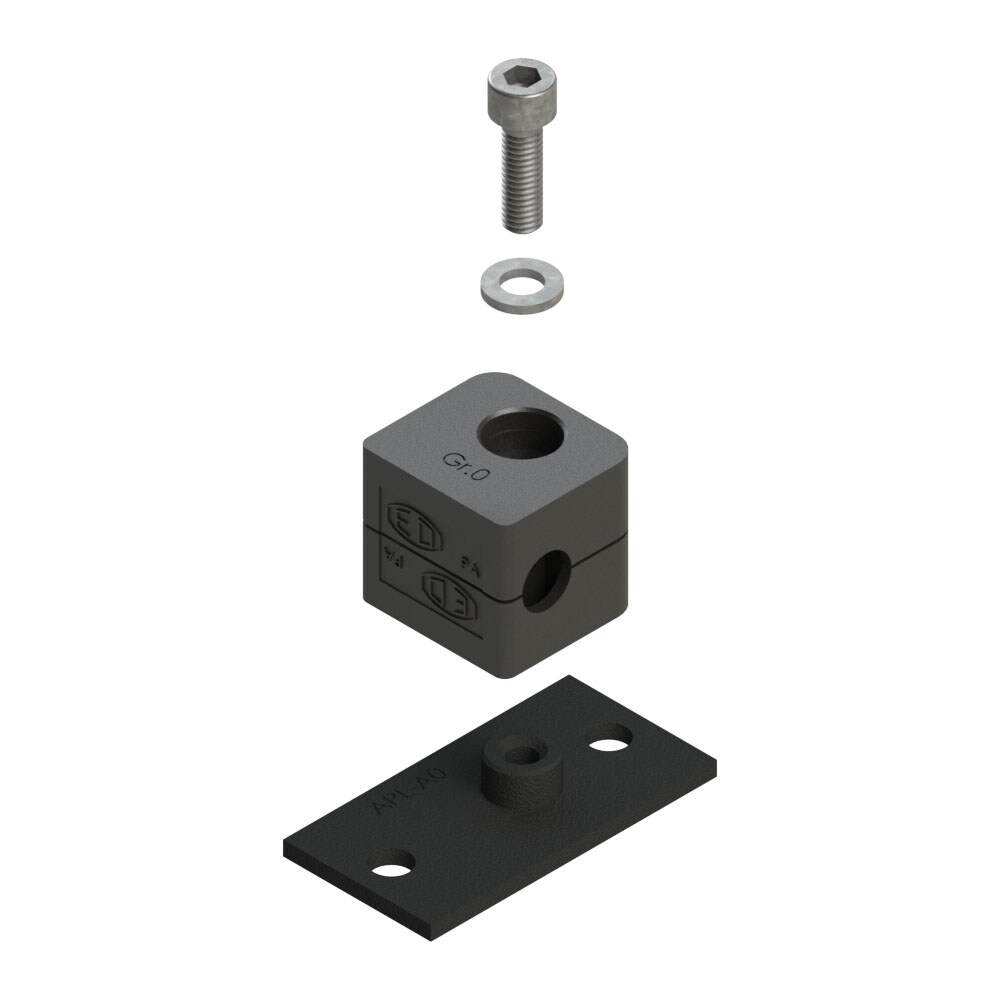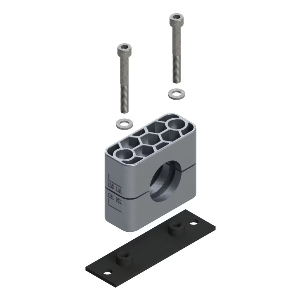 Rørbærer Serie A (Let Serie) - Komplet sæt (lang svejse-/skrueplade / bolt med Unbrako/indvendig sekskant/hex kærv)