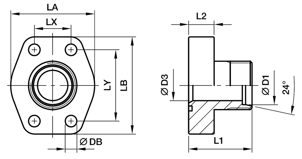 SAE Lige 4 Bolt Flange Med EO 24° Konus Ende - SAE Flange / EO 24° Konus Ende