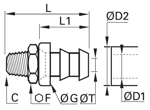 Selv Strammende Slangestuds Samler, Udvendig Gevind BSPT Gevind