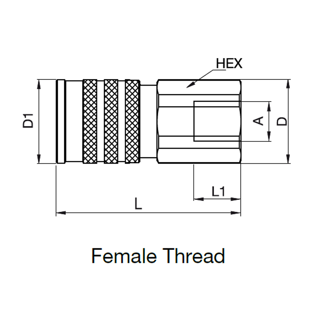 Serie FEM Flatface Lynkobling Hun - Indvendig Gevind