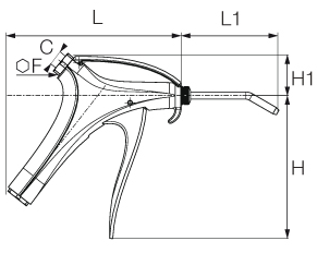 Sikkerhed Progresiv Kontrol Blæsepistol,Tilslutning foroven med Kort Vinklet Dyse, Indvendig Gevind BSPP