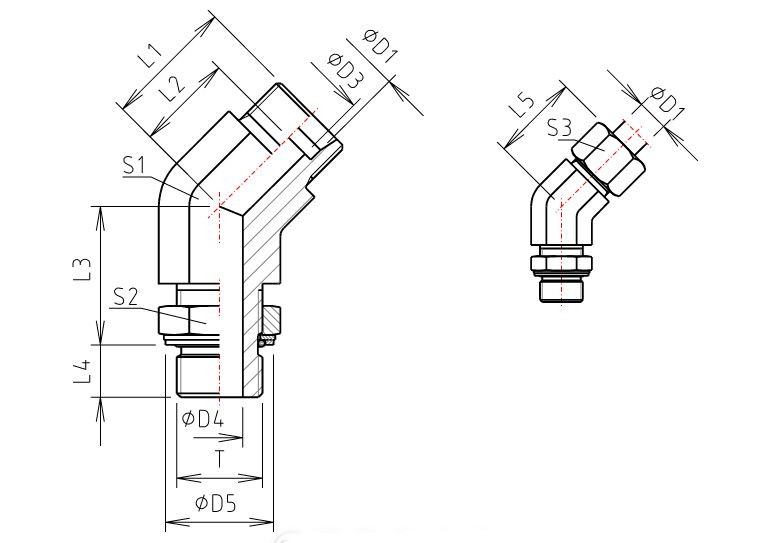 Stilbar 45° Vinkel med Låsemøtrik