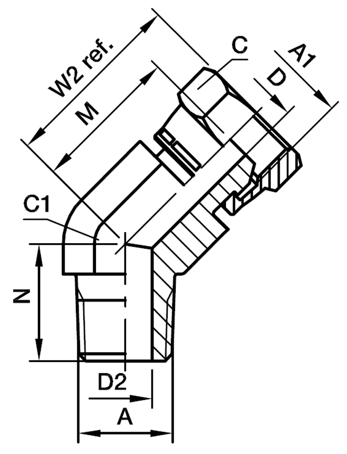 Svivel Udvendig 45° Vinkel - Udvendig NPTF/NPT Gevind / NPSM Indvendig Svivel Ende
