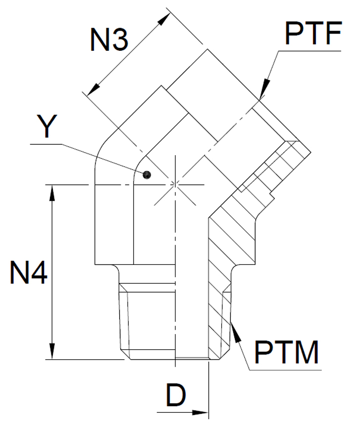 Udvendig Indvendig Gevind 45° Vinkel - Udvendig NPTF* Gevind (SAE J476) / Indvendig NPTF/NPT Gevind