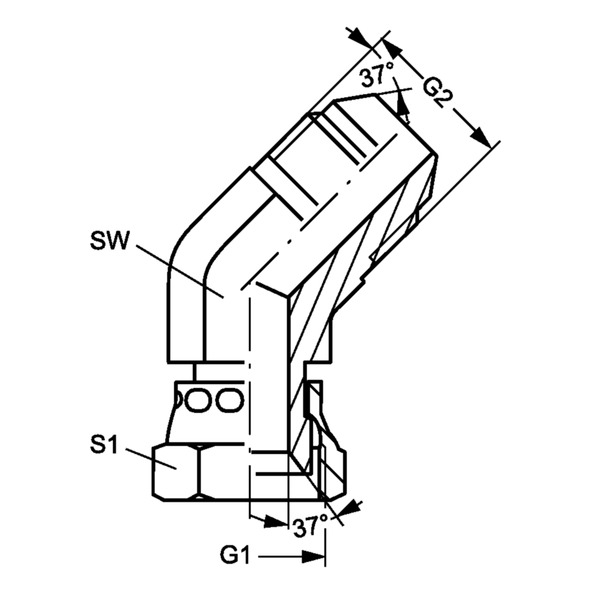Hydr. Adaptor, Elbow 45 °