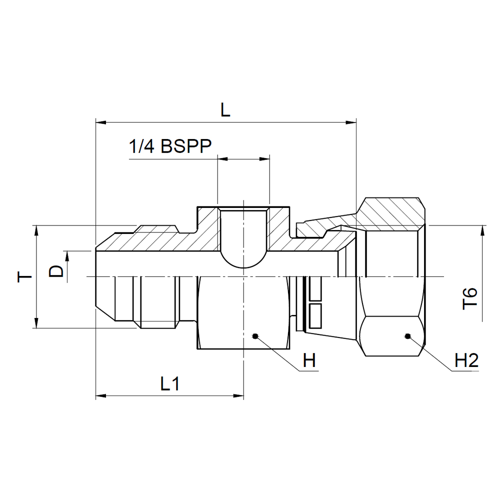 Test Point Connector - Male / Female swivel 37° flare end / Female BSPP thread