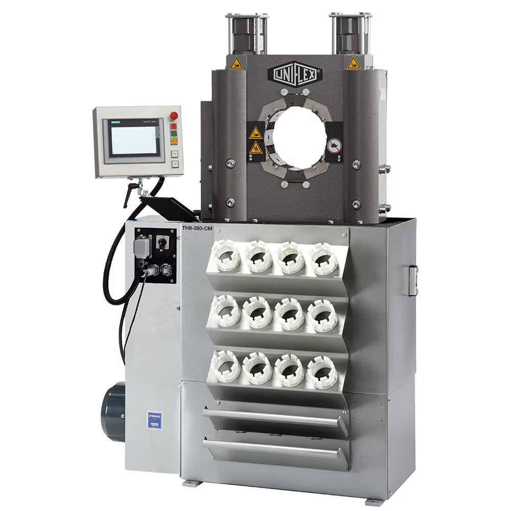 The TH 8E-380-CM is a robust crimping press engineered for professional hose production and workshop environments. This powerful machine is ideal for crimping multispiral hoses and all Parker industrial hoses in ...